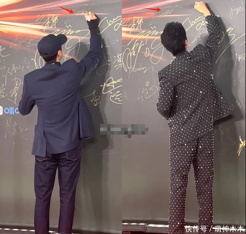 肖战走红毯的时候,大家光关注肖战签字的笔没水了,没发现他的签名就在王一博旁边,两人的签名紧挨着,直接同框了。要知道两人自从《陈情令》之后,几乎就再没有合体过了。