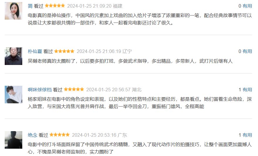 “这部电影简直满足了我对于武侠片的所有幻想”,“网大顶级”。
