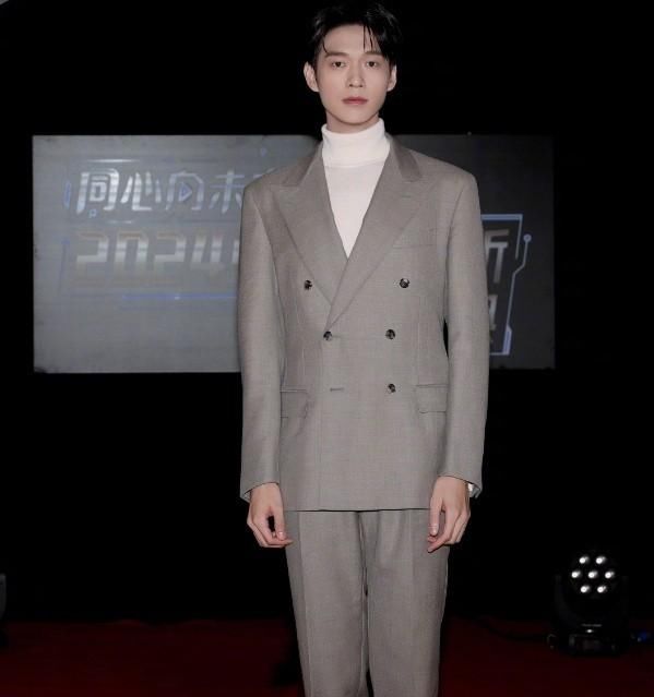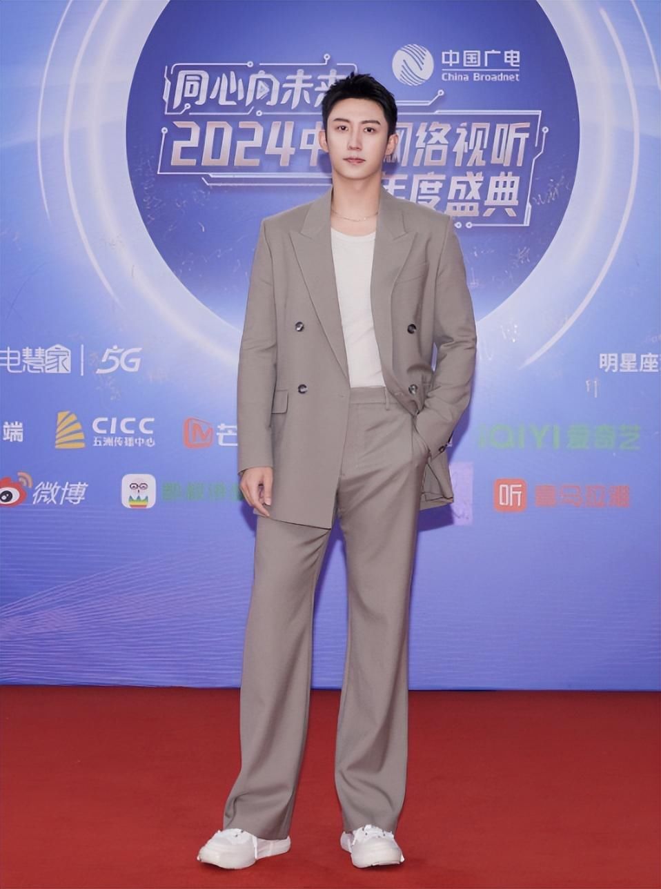 这次走红毯显然是精心打扮了一番,穿得很像男团,整体色彩搭配非常协调。