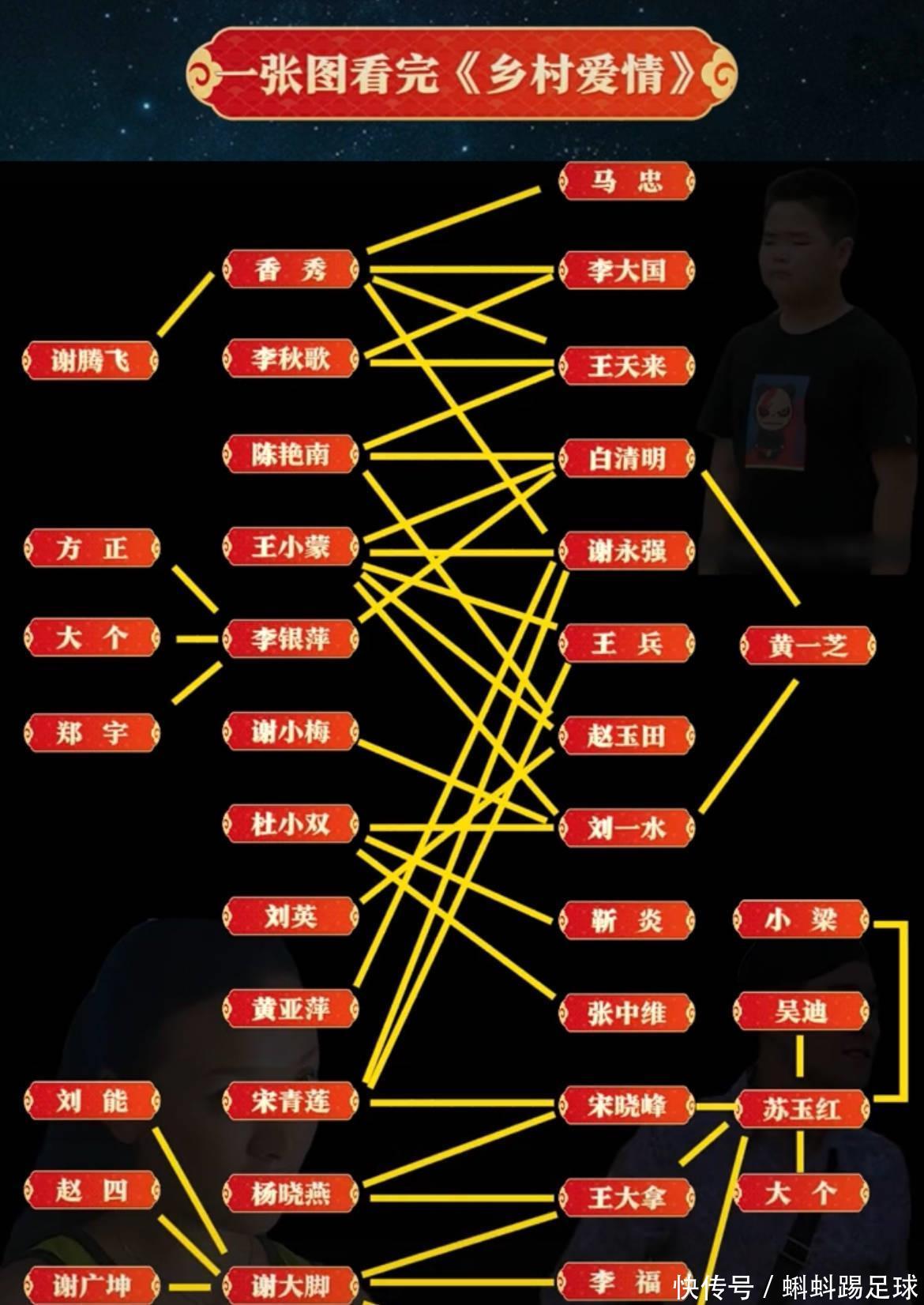 有网友总结了《乡村爱情》的人物关系,看了后不禁让人大跌眼镜。这错综复杂的爱情关系,比学生时代记的笔记还要密集,《百年孤独》作者在《乡村爱情》编剧面前都得称“小弟”。