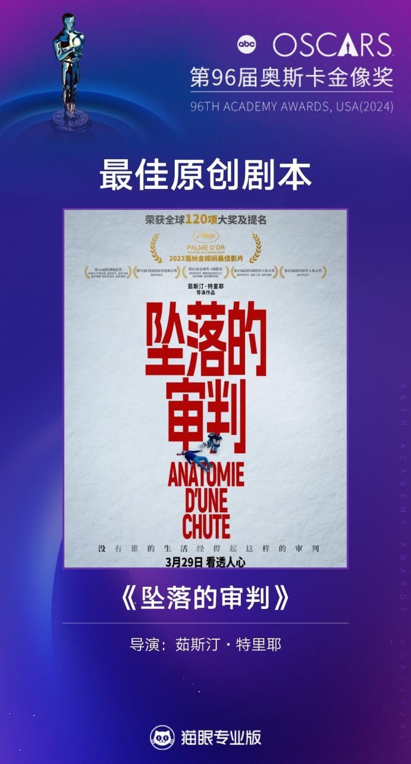 去年获得戛纳金棕榈最佳影片的《坠落的审判》获得奥斯卡最佳原创剧本奖,影片中的狗狗Messi也来到了奥斯卡颁奖典礼现场,影片将于3月29日在国内上映。有趣的是,在小罗伯特·唐尼以《奥本海默》获得奥斯卡最佳男配角时,Messi也“鼓掌”祝贺。