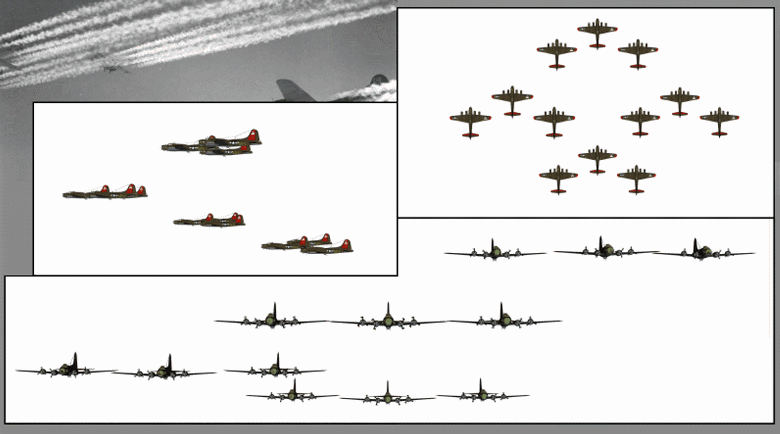 因此,美军研究出了“战斗箱(Combat Box)”战术,B-17轰炸机组成箱形编队,通常是以12架B-17组成四个高低、左右不同位置的三机编队,各机的自卫火力相互衔接、组合,形成一个更为庞大的火力网。凭借“战斗箱”战术,将B-17的自卫火力最大限度发挥出来,从而大大减少了B-17的损失。