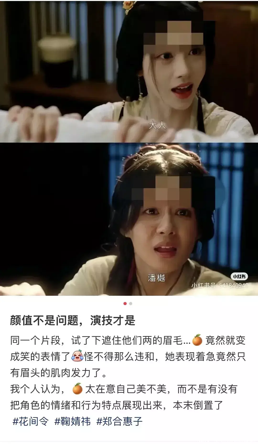 而这种换脸剧情,同一个内核但不同的脸是最容易看出演技对比的,于是围绕鞠婧祎和郑合惠子的比较就轰轰烈烈的展开了。