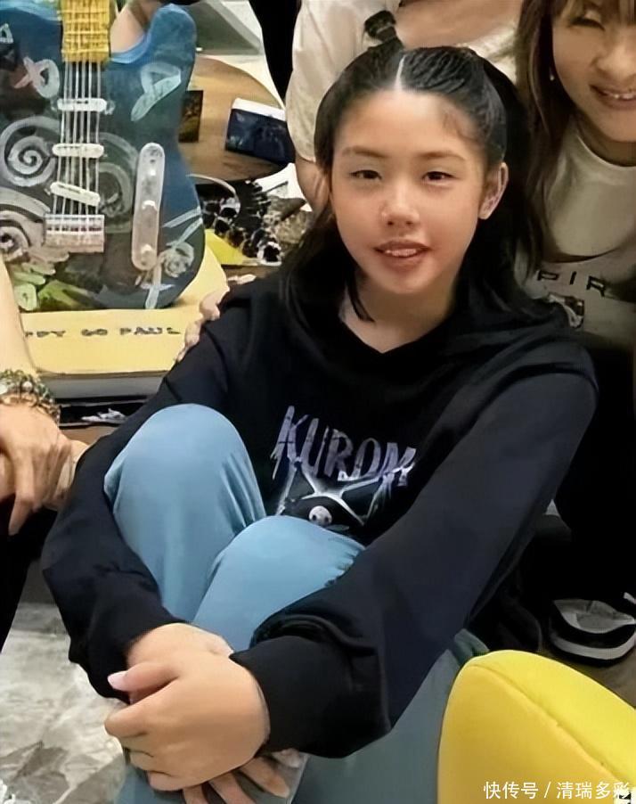 这娃像爹多点儿,但又比她爸好看很多,多亏了朱茵长得好看啊。