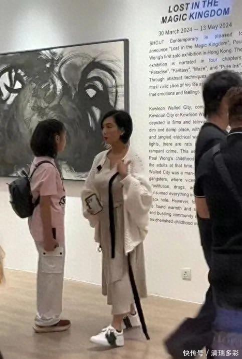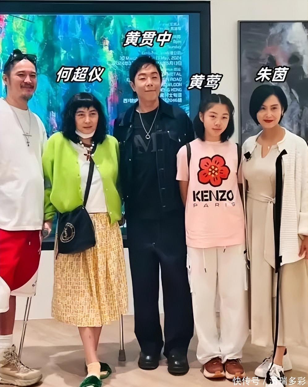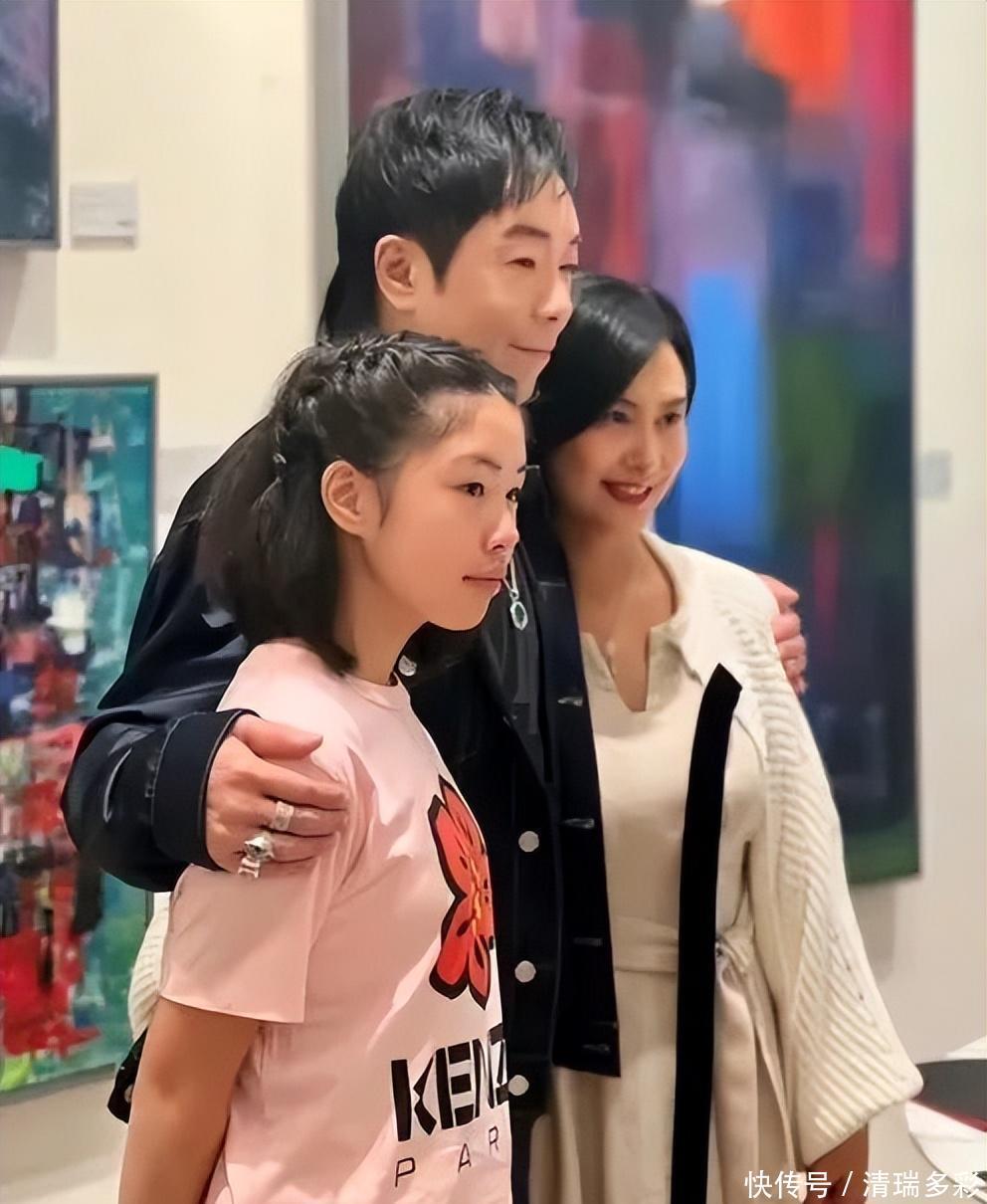 近日她老公黄贯中办画展,52岁的朱茵打扮时髦,陪12岁女儿一起去支持黄贯中。