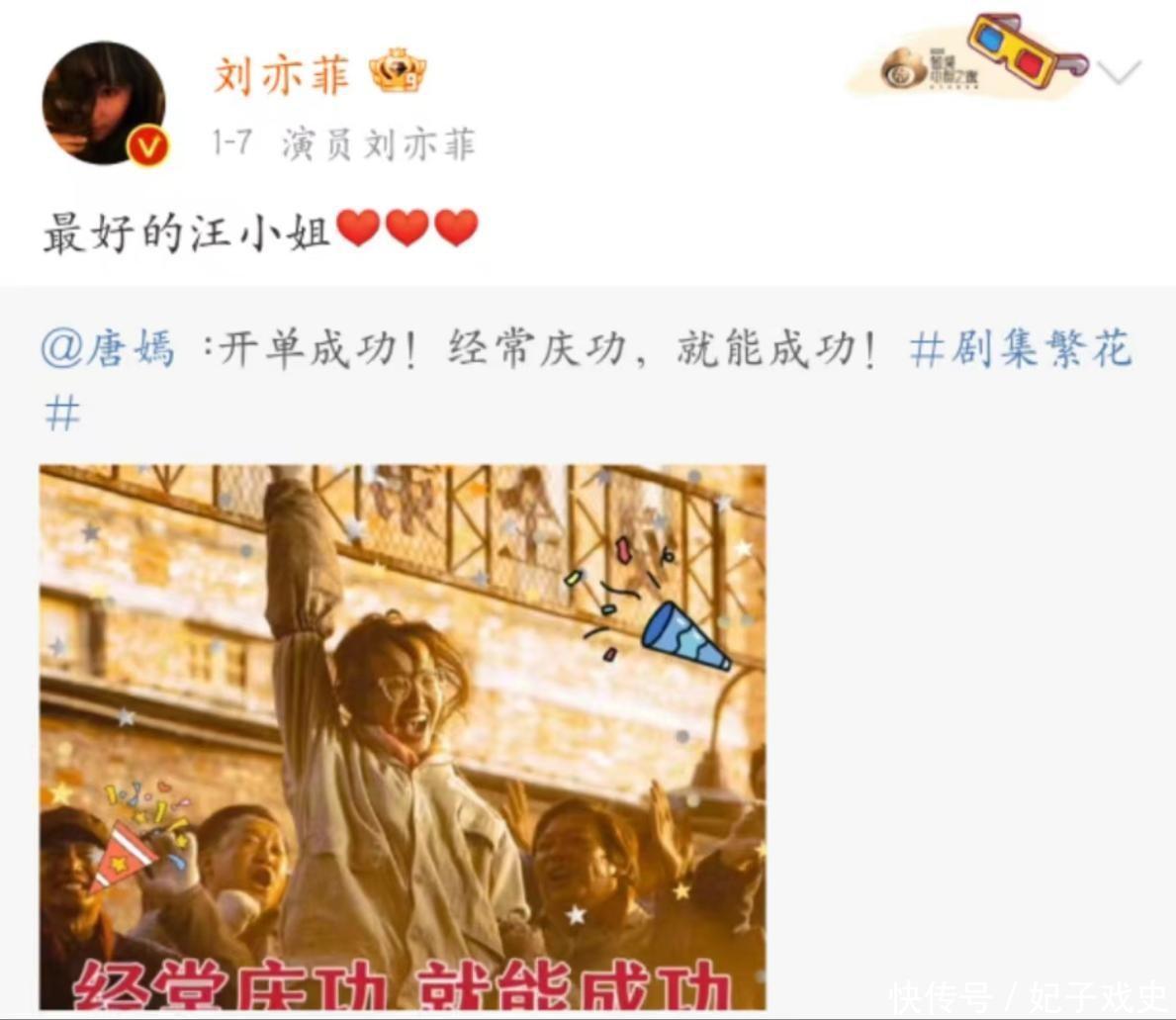 刘亦菲此举无疑是对唐嫣的支持与关注;