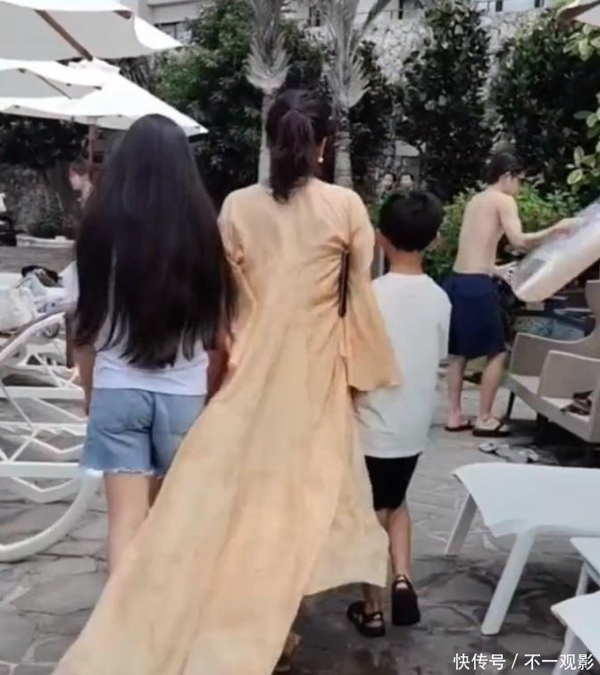 而后来的镜头似乎是张兰带着两个孙子孙女在一处桥边玩,在这里张兰也为两个孩子拍下了不少的照片,照片中我们看到张兰穿得非常的高贵典雅,而小玥儿却穿着一身非常单调的T恤短裤,脚上甚至还穿着一双拖鞋。