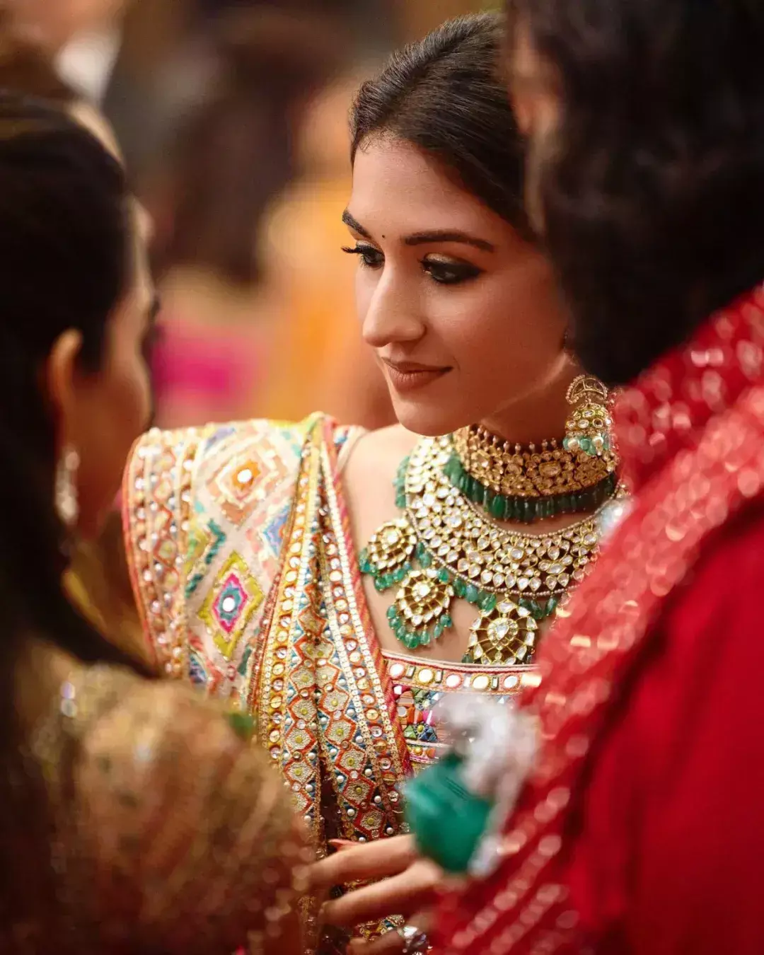 新娘拉迪卡作为这几天的主角,连换多套礼服,珠宝搭配不重样,五排钻石项链是新娘的“传家宝”,是她的爸爸当年送给妈妈的。这位嫁入豪门的媳妇背景大有来头。 她是制药公司Encore Healthcare执行长Viren Merchant与企业家Shaila Merchant的女儿,,跟Anant Ambani可以说是门当户对。
