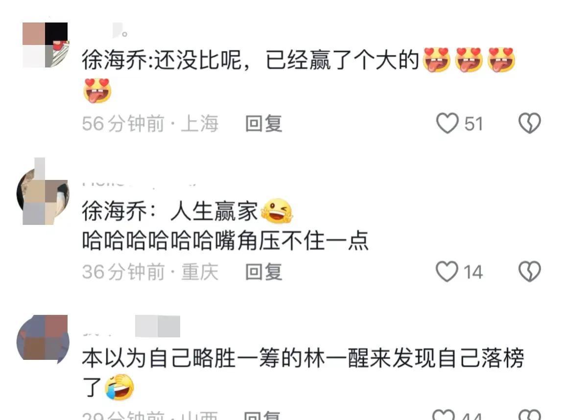 徐海乔还没开始比赛呢,就赢麻了,林一要哭晕在厕所了。