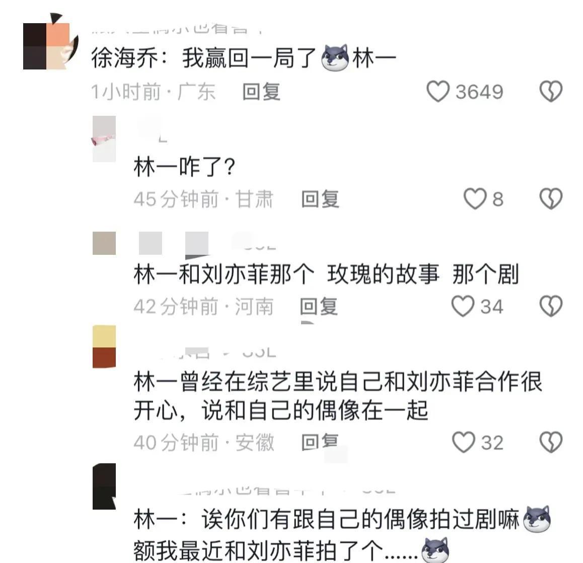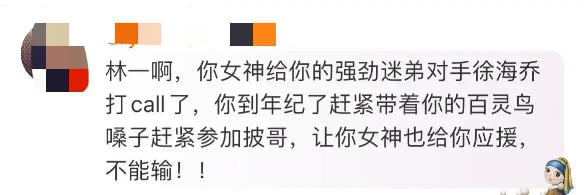 林一:徐海乔不仅和刘亦菲拍了电视剧,刘亦菲还给他打call了,这一局你输了。