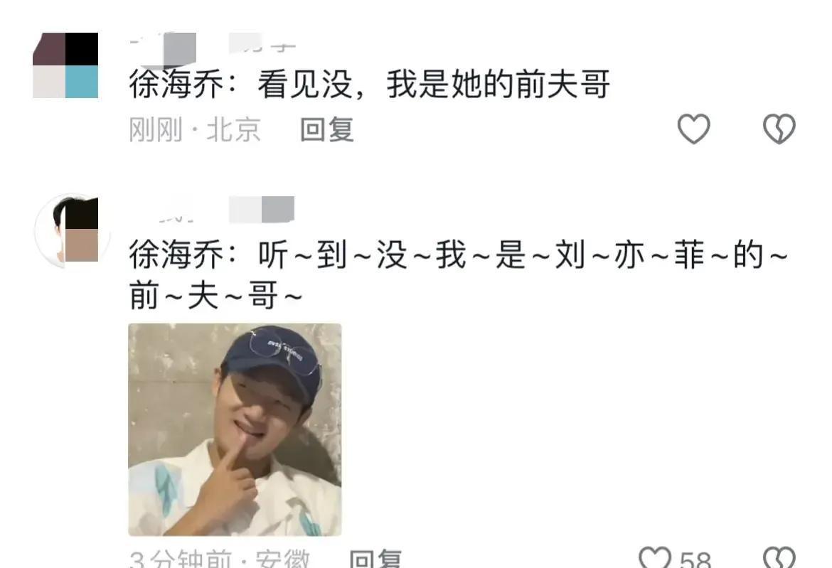 在节目上徐海乔还大方分享自己喜欢“前夫哥”这个称呼,毕竟那可是刘亦菲的前夫呢!