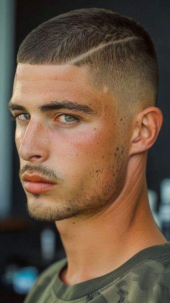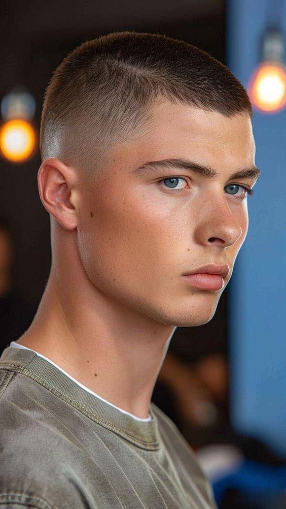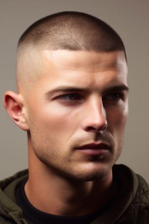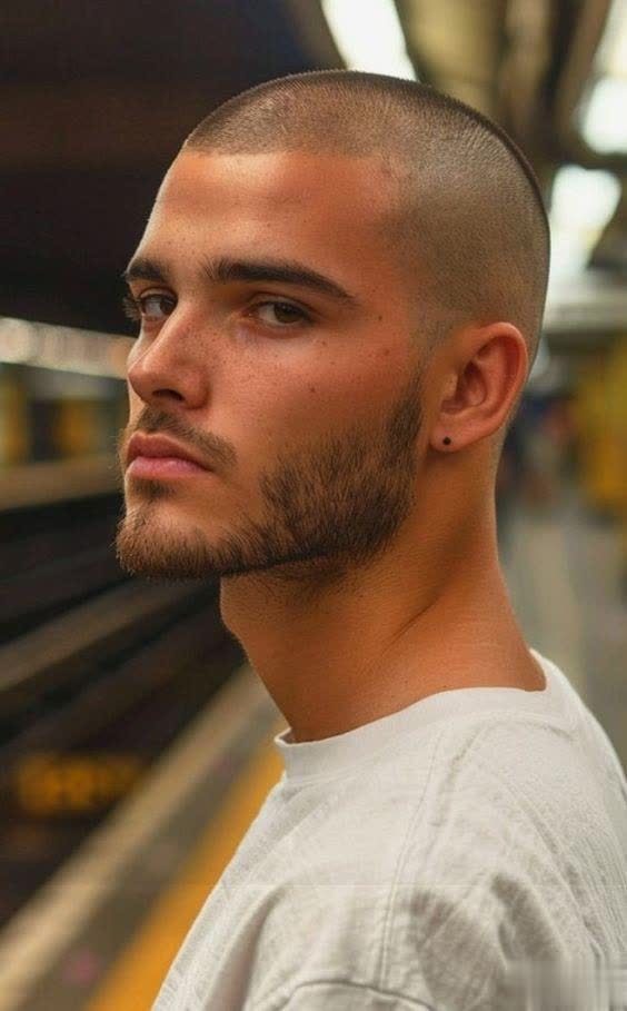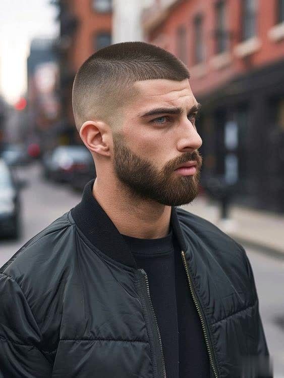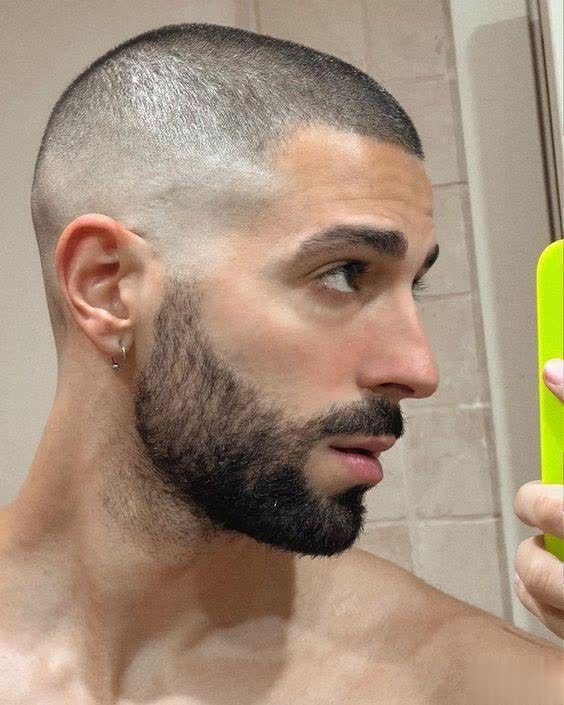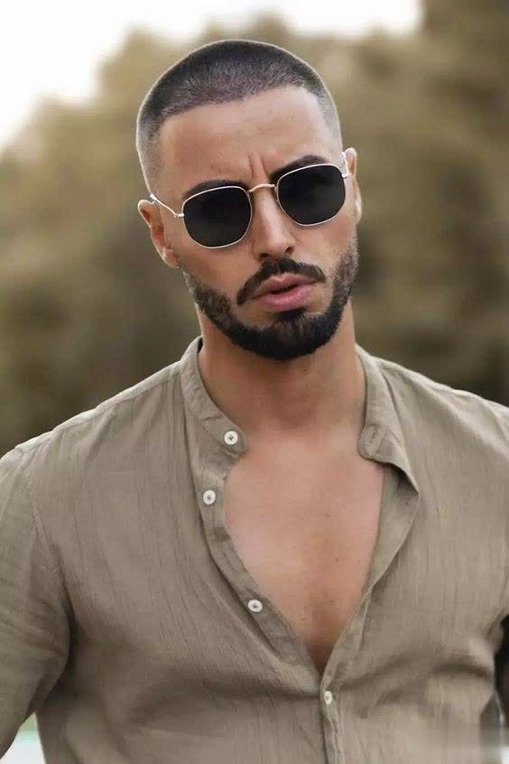 棱角分明的下颚、高耸的颧骨、深邃的眼睛等面部特征在超短寸头的映衬下更加醒目,让男性看起来充满了力量感和男性荷尔蒙。