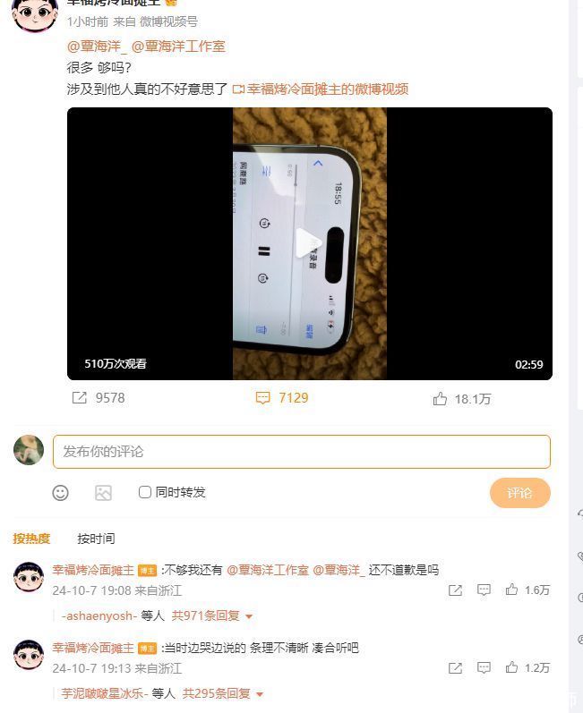 10月7日,覃海洋工作室发布了一份严肃的声明,他们会对小胖蛙的指责和网友的不实评论采取法律行动。