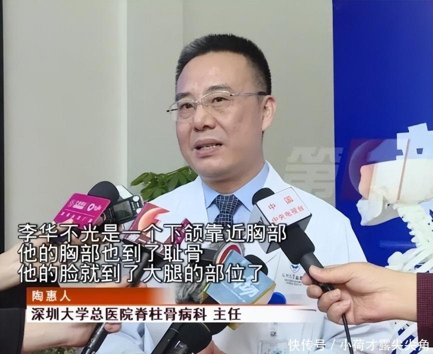 此时的李华站着的身高仅有90cm,对比起当初的1.7米的高个子,他的身体几乎已经是“叠起来了”。