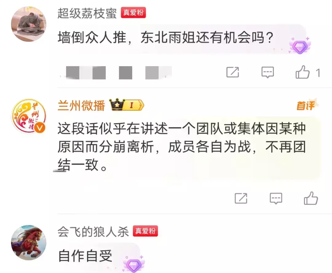 很多网友表示心疼雨姐,这样的结果也怪不得别人。还有的认为实际上这些账号都是一个公司的,与其断开联系或许也是她授意的,毕竟这样能更好的保住其他人的账号。
