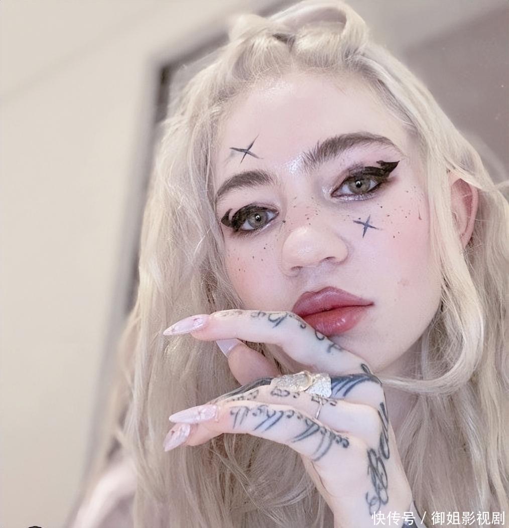 浓妆、朋克、纹身、摇滚,集所有个性于一身的歌手格莱姆斯,怎么看都是一个五彩斑斓的非主流少女。