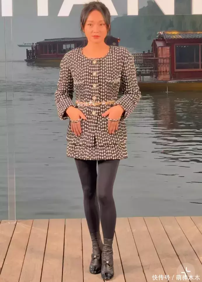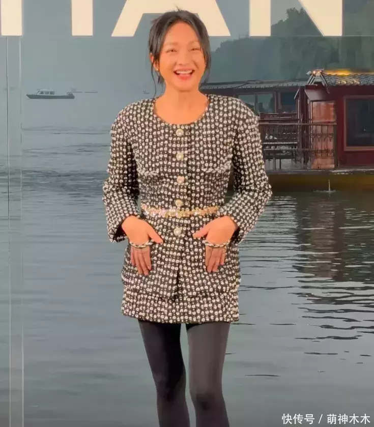 ——除了轻松和摄影师互动,笑对现场提问“人多吗”,周迅的松弛感还体现在她的穿搭上,软呢高定经典设计香奈儿套装,愣是被她当成了家居服,紧紧包裹在她腿上的黑色健美裤那叫一个抢镜。