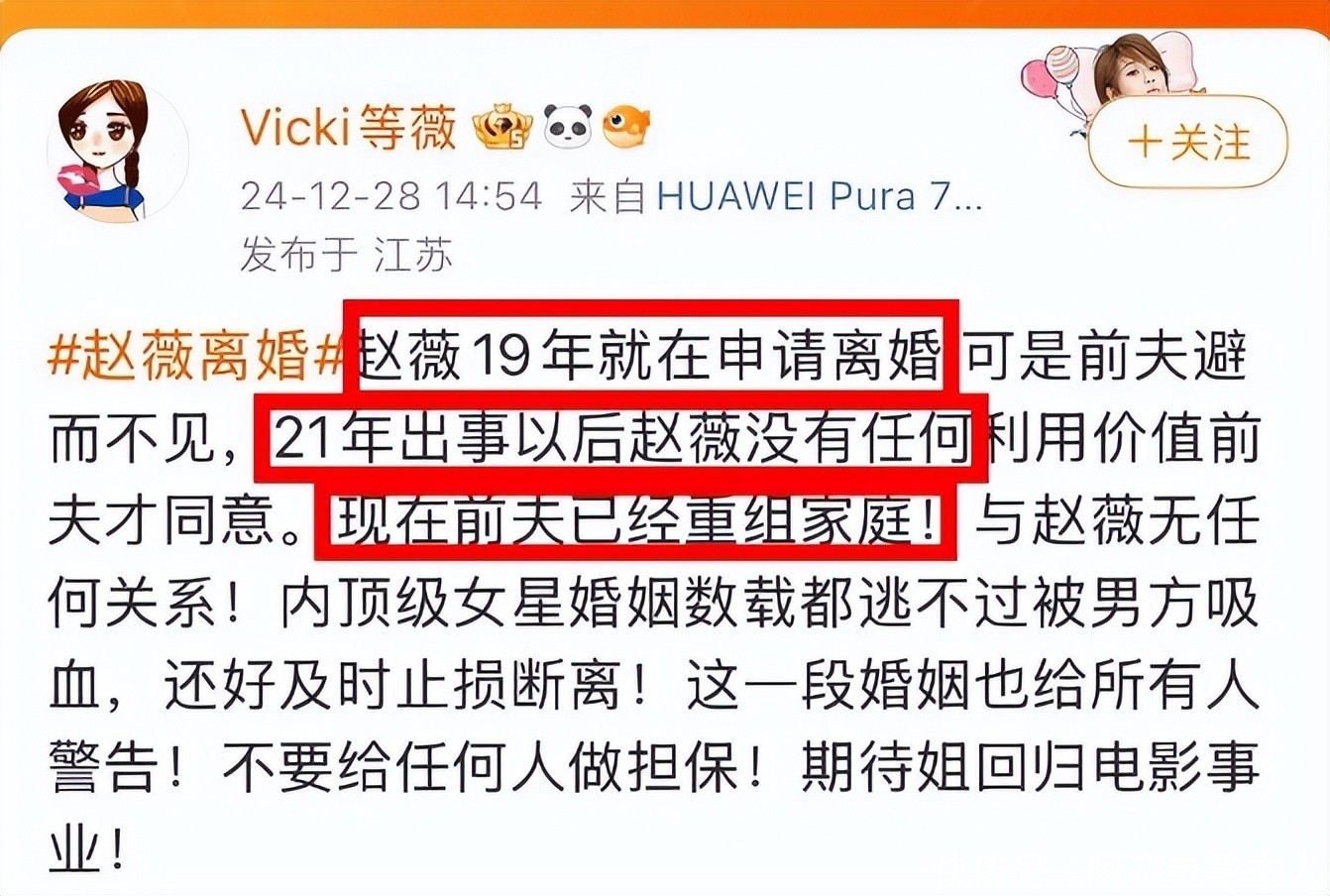 12月28日,赵薇和黄有龙已离婚多年的消息,霸占了热搜。