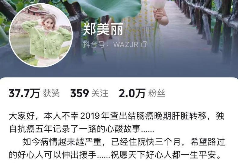 2025年1月3日,年仅33岁的网红郑美丽因结肠癌去世,她能在网上火起来,还是因为她在网上发布了她的抗癌历程。