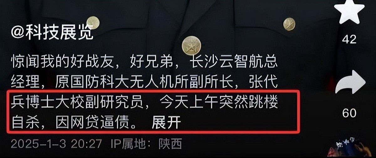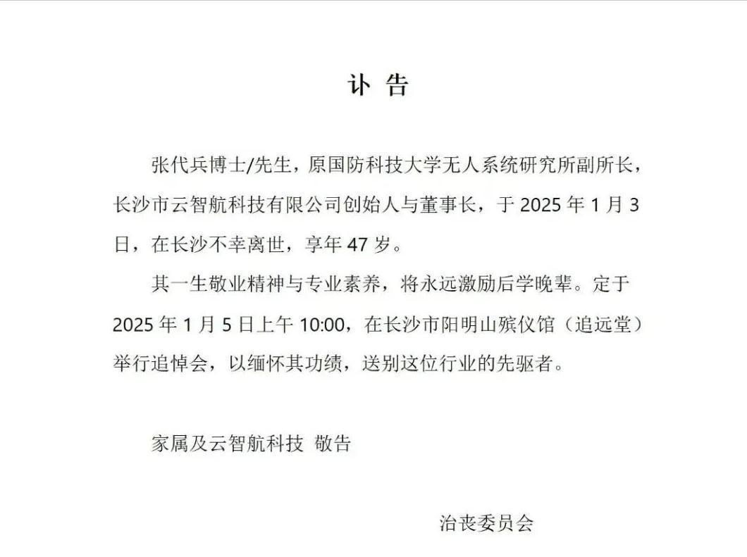 2025年1月3日,我国无人机领域的顶级专家,国防科技大学博士张代兵在长沙离世,年仅47岁。