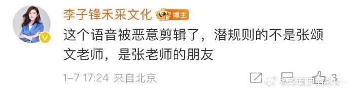 在姜尘公开聊天截图后,“禾采文化”的投资人发文否认,称录音被恶意剪辑,潜规则的不是张颂文,而是张的朋友。