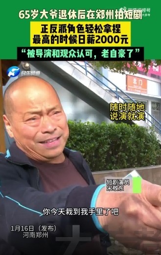 65岁退休大爷在短剧演反派日入2000:没想到意外走红,经常日夜连轴转