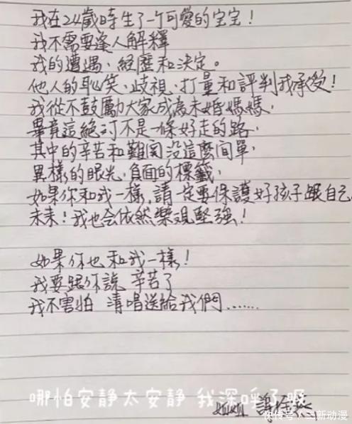 谢金燕在文中写道“我在24岁时生了一个可爱的宝宝,我不需要逢人解释,我的遭遇、经历和决定,他人的耻笑、歧视、打量和批判我承受。”