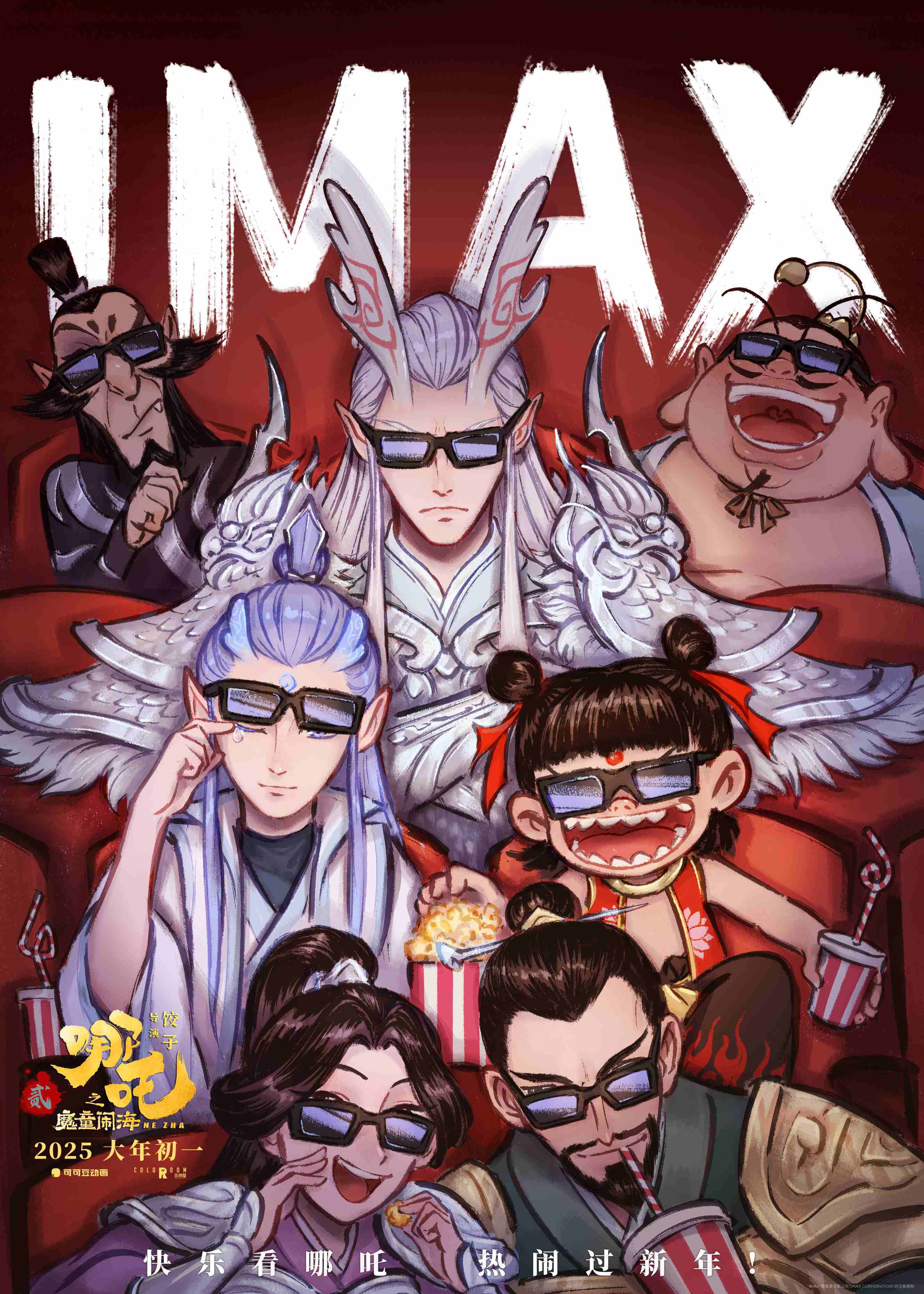 《哪吒之魔童闹海》同样发来与“吒儿”一起风火开年的邀请,IMAX“全家福”特别海报今日曝光。哪吒、敖丙携新老角色组团闪现IMAX影院,其乐融融,力邀全国观众欢聚IMAX影院过年。漫画感的画风结合角色或开怀大笑或傲娇扮酷的欢脱表情,呼应影片喜剧风格的同时也凸显适合全年龄段的合家欢定位。勇夺国产动画电影票房冠军的国漫IP以全面升级的制作水准归来,将在IMAX纤毫毕现的大银幕上展现更为震撼的视听奇观,演绎热血沸腾的少年传奇。