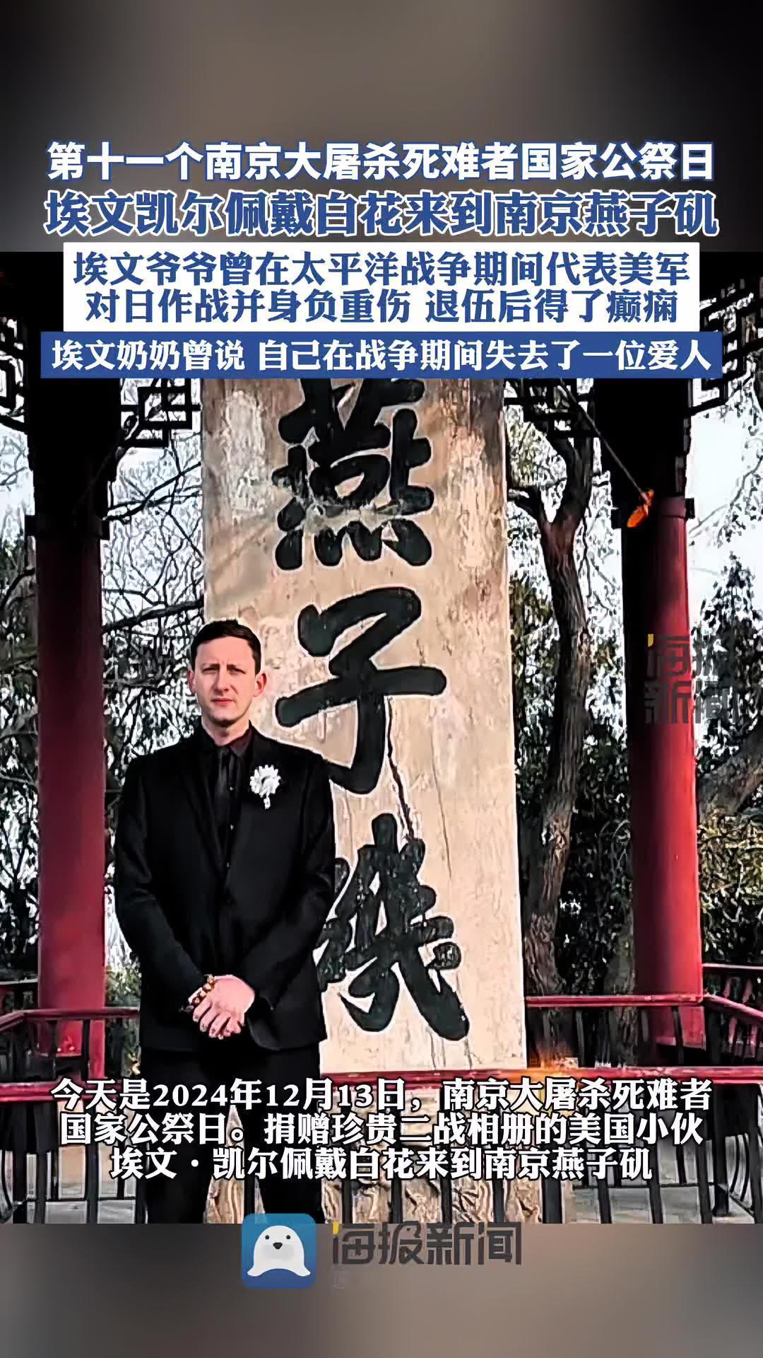 在北京待了几天,埃文去了天坛、长城,离开北京后去了天津、上海,在他的计划中,最后一站一定要放在南京,因为他一定要参加12月13日“南京大屠杀死难者国家公祭日”,也正是在南京参观侵华日军南京大屠杀遇难同胞纪念馆后,他才明白了自己捐赠相册的意义。