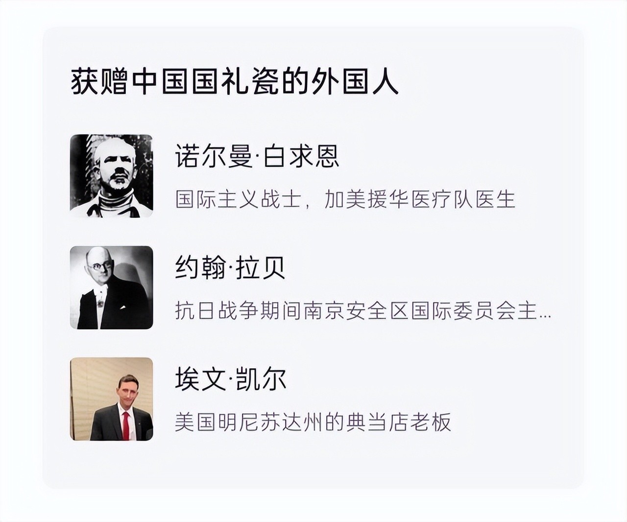 后来过了两个月,已经开始活跃在中国社交平台的埃文终于更新了关于二战相册的最新动态,最终它被无偿捐给了中国驻芝加哥总领事馆,而埃文则收到了一件珍贵的国礼瓷作为回赠品,而在他之前获赠过国礼瓷的,只有在战争期间为中国做出过突出贡献的约翰·拉贝和白求恩。