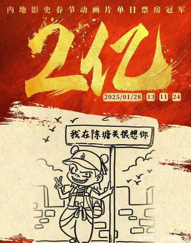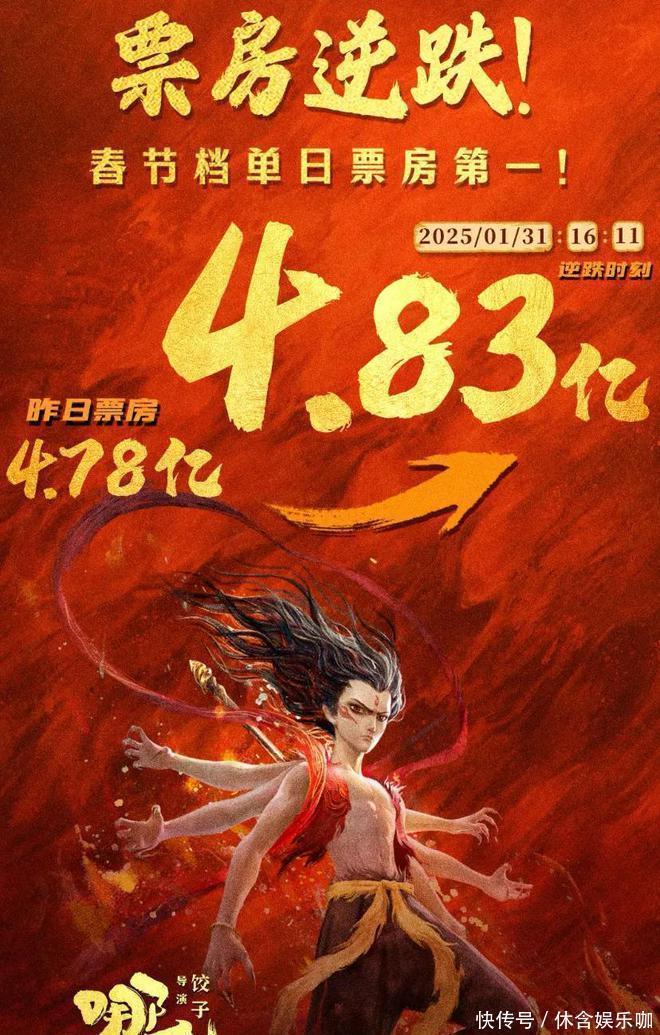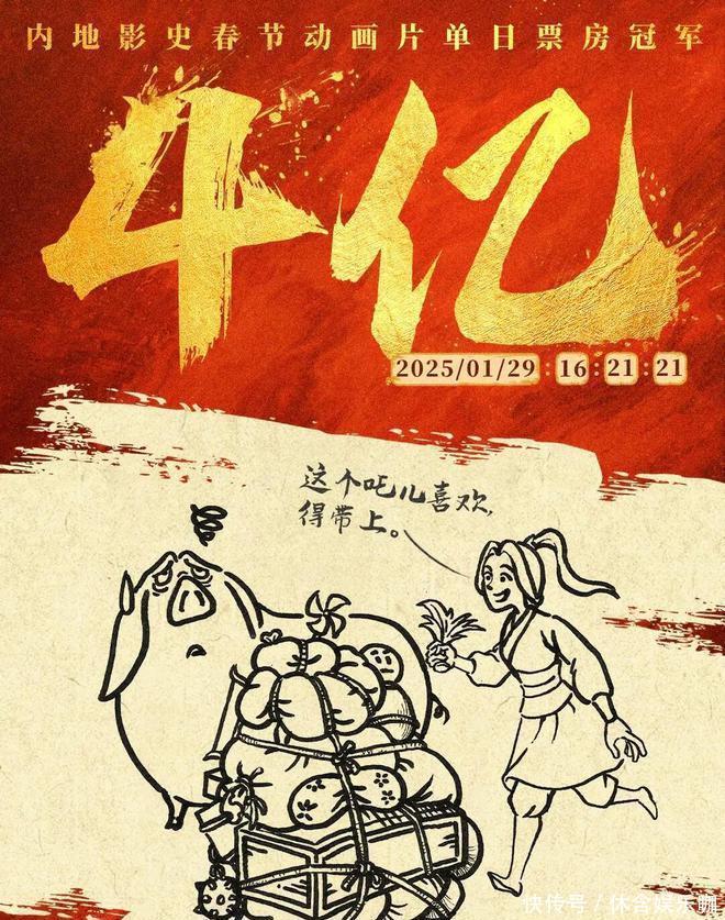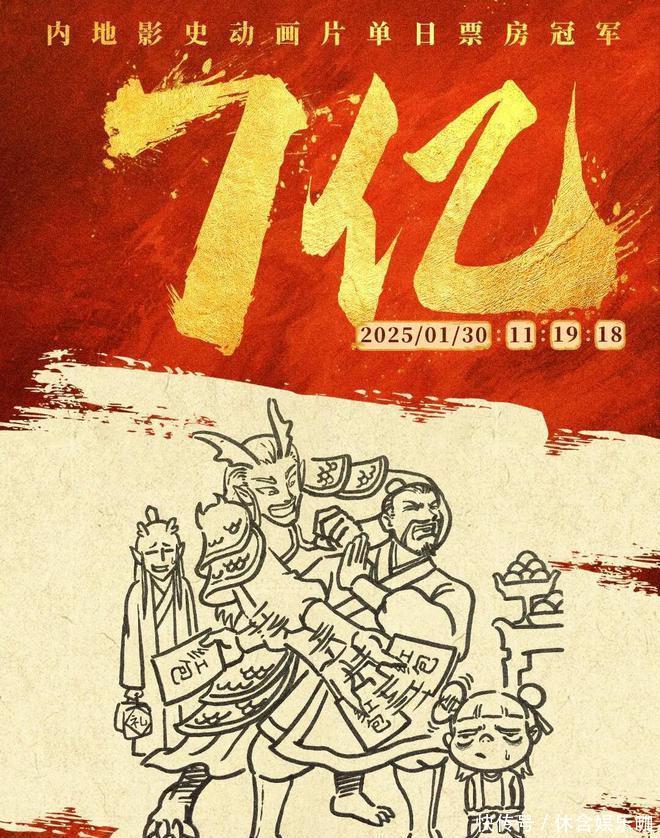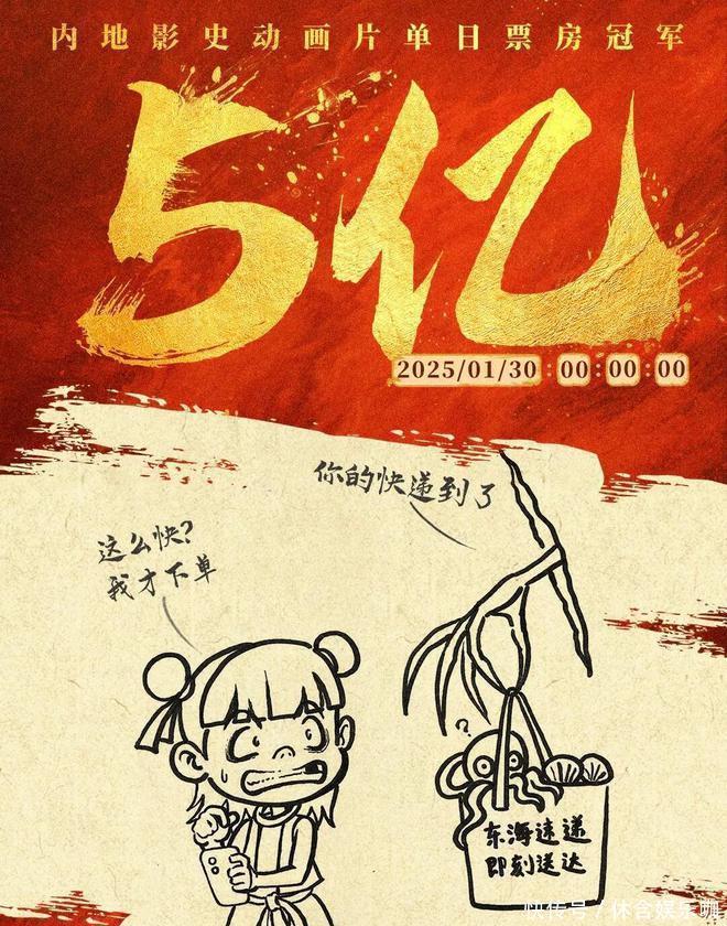 电影《哪吒之魔童闹海》上映四天,票房破20亿,在上映第三天还实现了票房逆跌。饺子导演很有心地画了手绘电影海报,但是电影票房破亿速度太快了,饺子都画不过来了,他的笔都要画冒烟了。