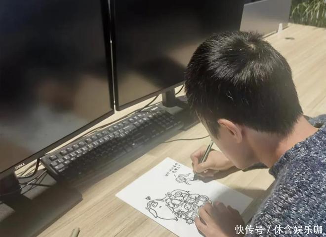导演饺子在卖力的画电影海报,但是他手绘的速度根本赶不上电影票房破亿的速度,饺子手里的笔都要画冒烟了。