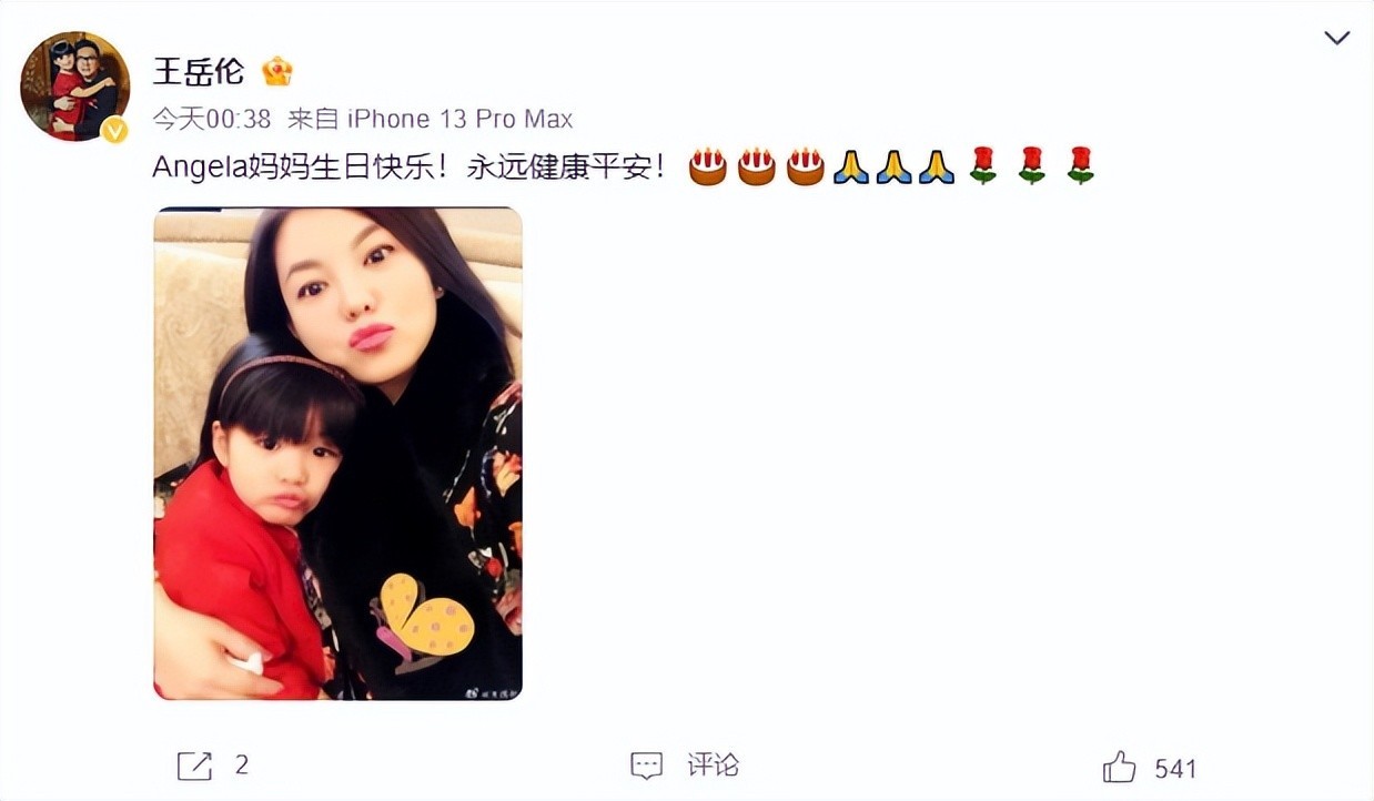 王岳伦晒出李湘和女儿王诗龄的合影,并配文称:“Angela妈妈生日快乐!永远健康平安!”