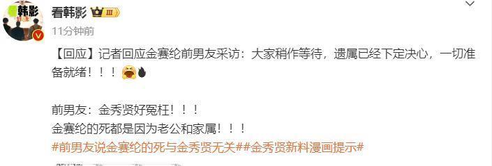 如今记者也表示家属对这几日金秀贤方面的操作感到寒心,已经下定决心了,要公开一切了。