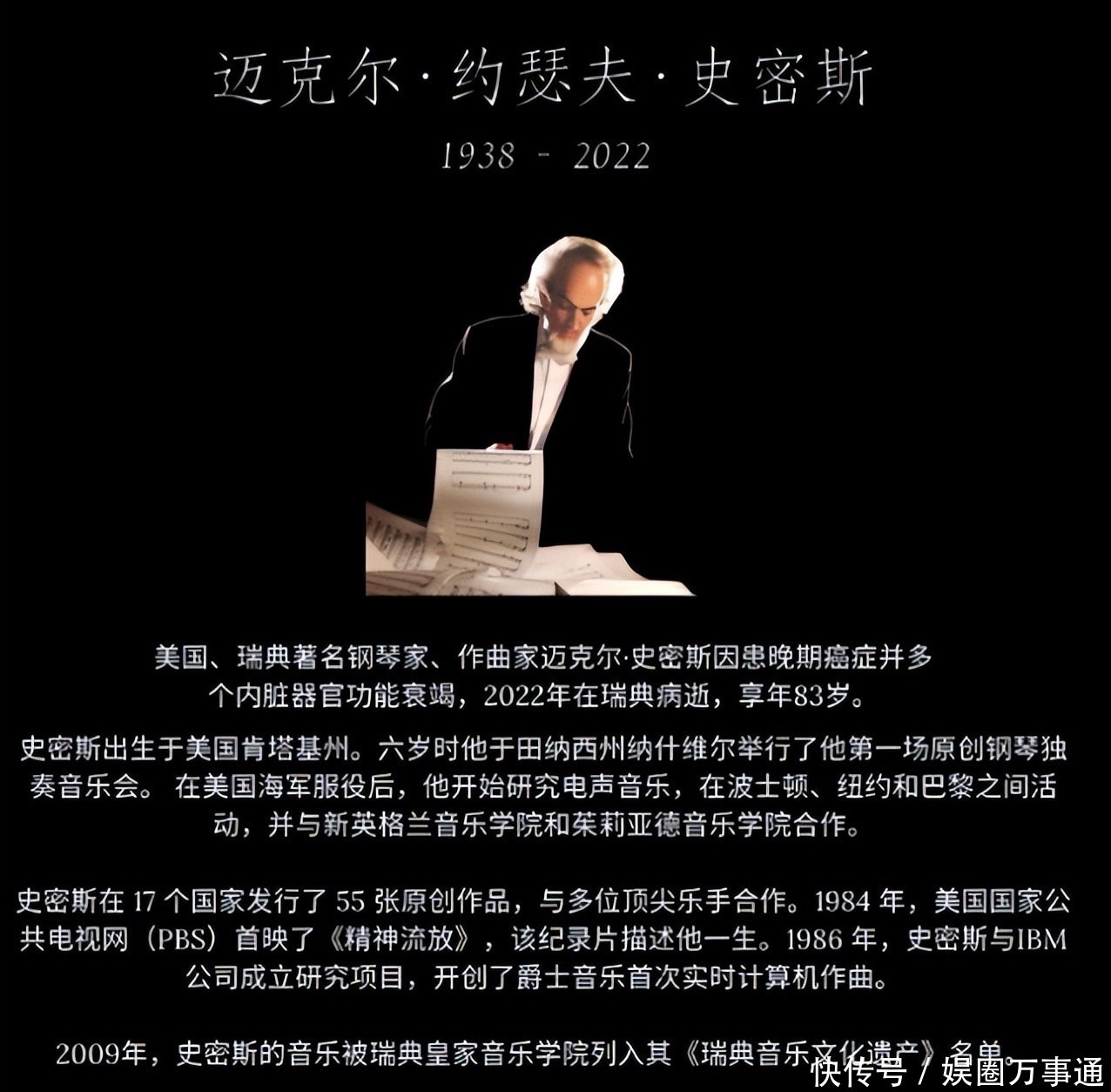 2023年,韦唯突然在自己社交平台上发布一则卜告,原来是前夫斯密斯晚年因为患上癌症,引发多器官衰竭而死亡。