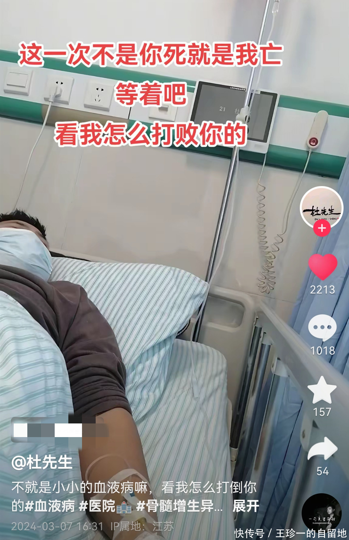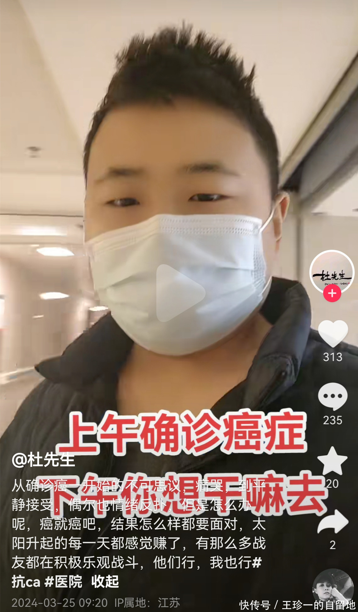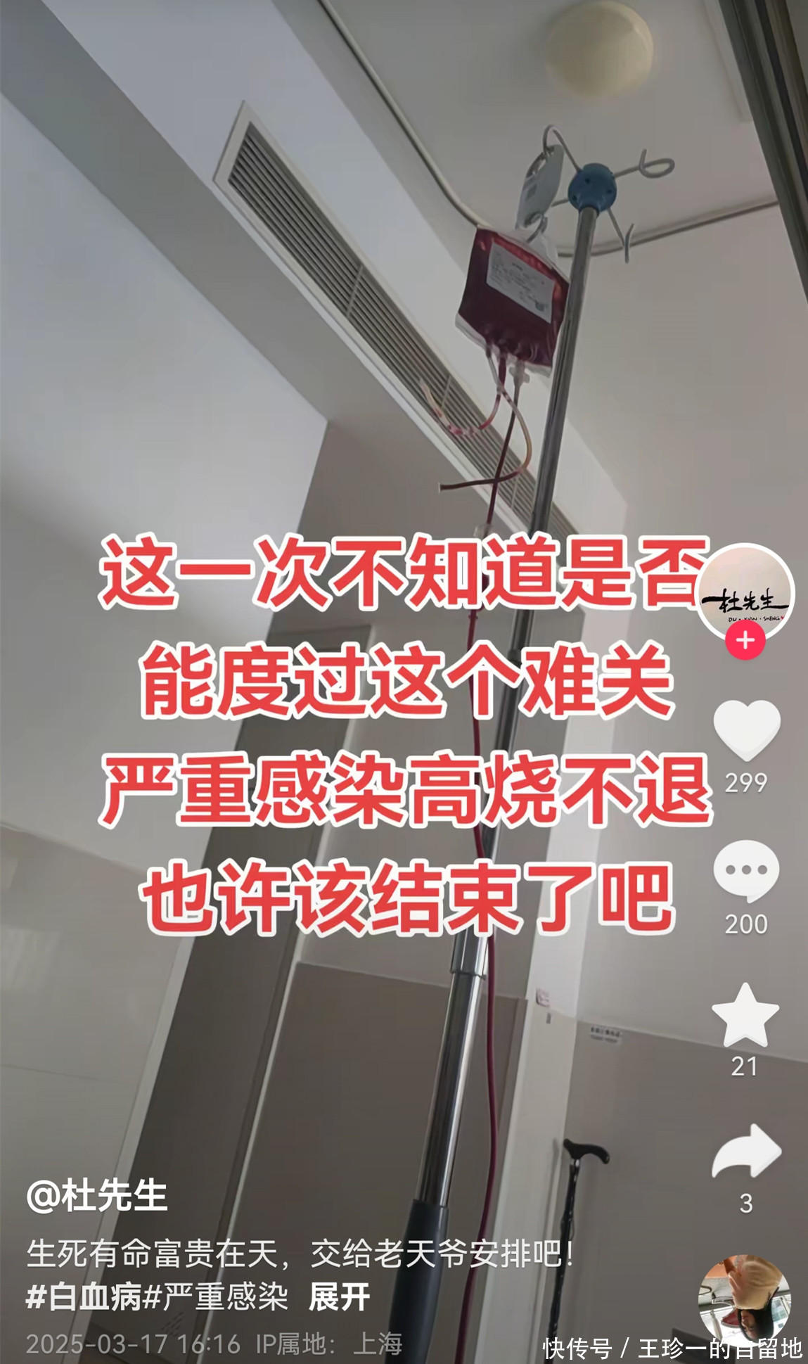 翻看杜先生的账号可知,3月17日他发了一条视频,预感自己时日不多。