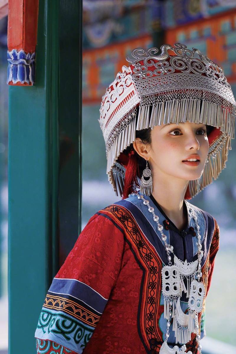 彭小苒化身彝族少女,红墙漫步美出圈!