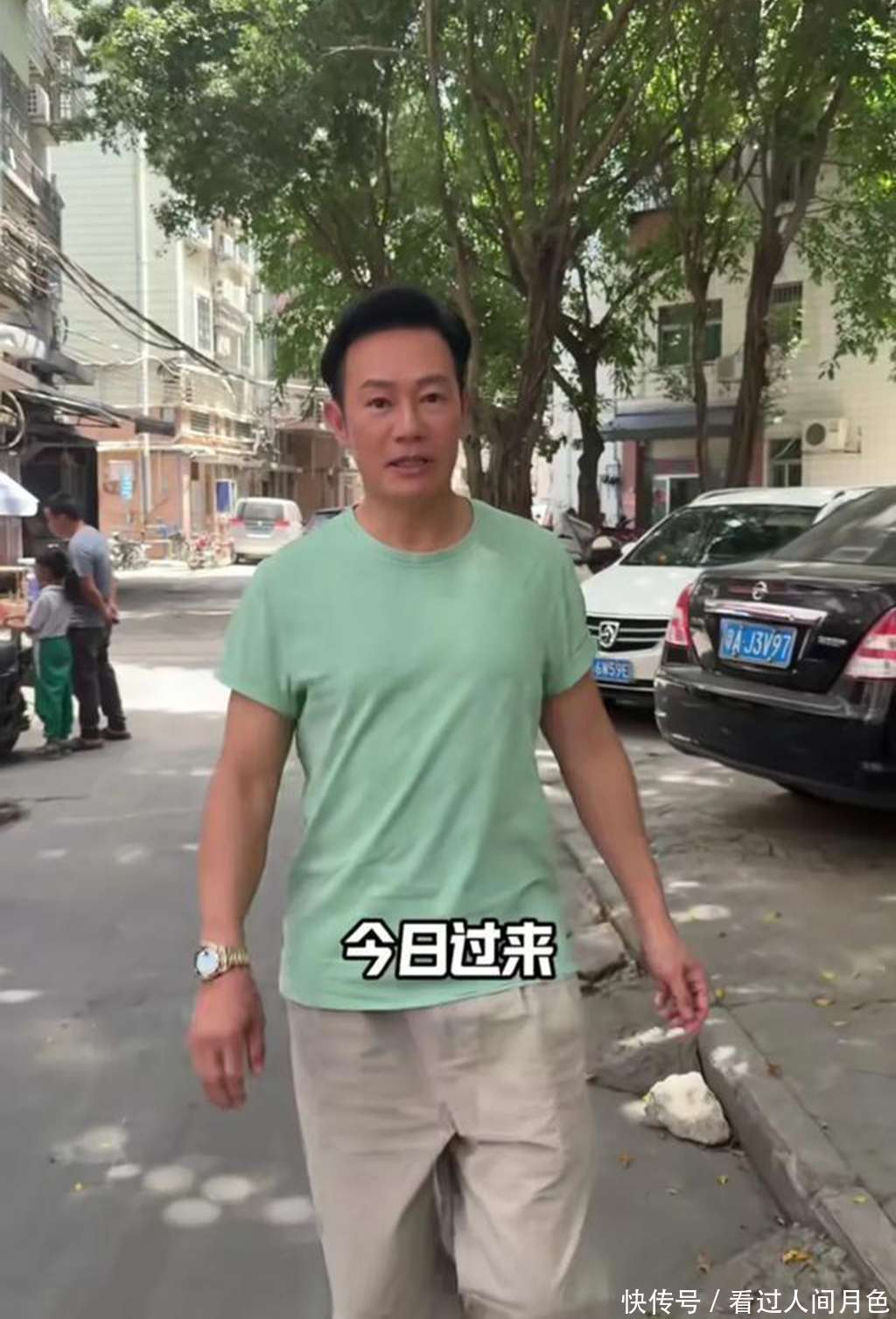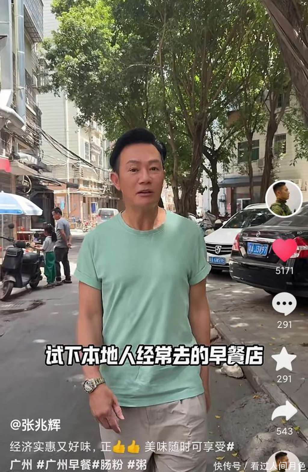 视频里的张兆辉一身绿T恤配牛仔裤,踩着人字拖踱步在广州白云区的街头。这身打扮让老粉们倒吸凉气:“这不是我家楼下跳广场舞的王大爷同款吗?”可人家手里攥着的不是一串钥匙,而是泛着油光的塑料打包盒。