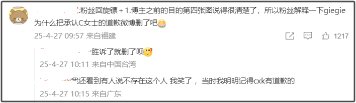 看到W女士晒出完整的判决书,网友认为蔡徐坤粉丝求锤得锤,而蔡徐坤粉丝还在狡辩,认为蔡徐坤删除承认C女士的微博就是因为胜诉了。
