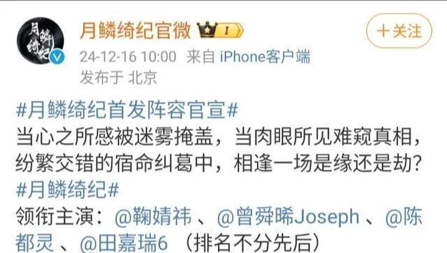 值得一提的是,陈都灵目前正在拍摄《月鳞绮纪》。