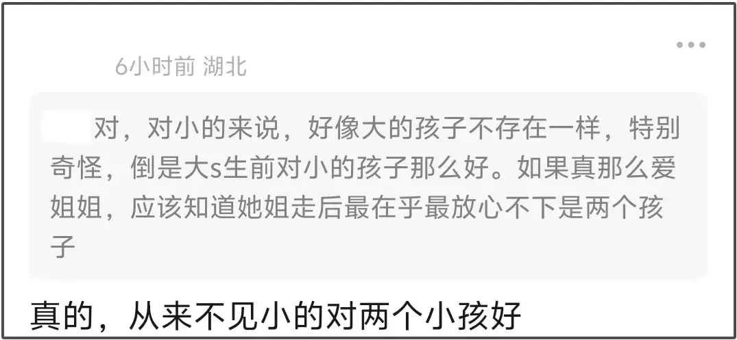 就算默认生父汪小菲负责两个孩子的未来,S家是不是也应该偶尔关心小朋友两句呢?哪怕是做个面子,然而他们都没有,甚至在母亲节之前,让两个失去母亲的小朋友,再次被迫面对伤痛。