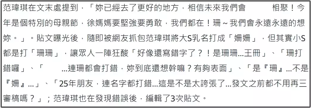 ——范玮琪叫错大S昵称,可见小S发信息要来的悼念,哪怕是好姐妹,都没有太过认真。