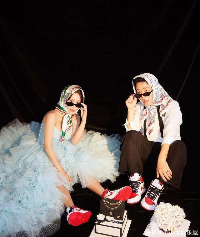 还有那套“GD风”墨镜头巾的造型,简直是把潮流玩明白了。谁说结婚照就一定要规规矩矩?就是要玩出自己的风格,就是要让别人一看就知道,“这很金俊昊金智珉!”