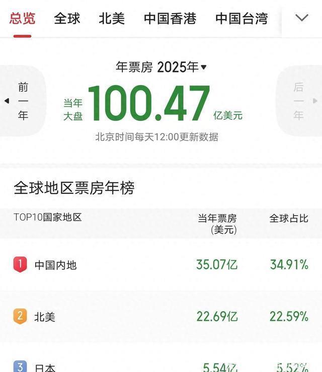 最新数据显示,2025年全球年度累计总票房已于前不久正式突破了100亿美元,换算成人民币则是在730亿以上。