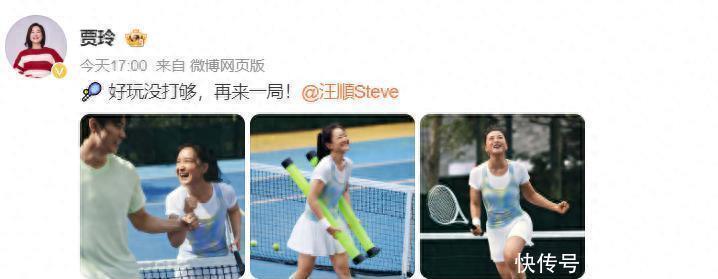 贾玲在账号上写道,她跟汪顺一块打网球玩得特别开心,说这活动太有意思了,还没过够瘾呢,下次还想再来一局。