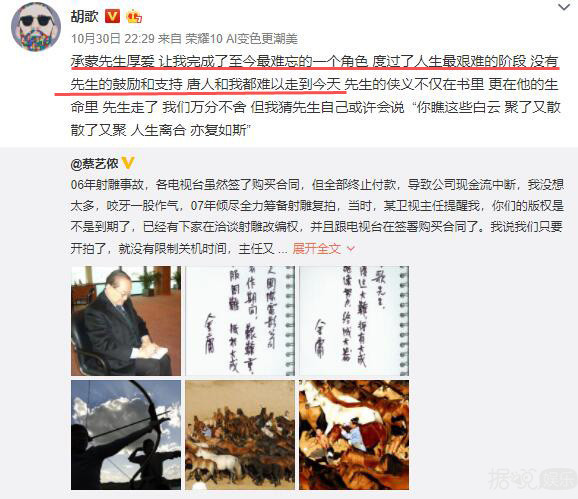昨天,胡歌还发文说:郭靖是我至今最难忘的一个角色,金庸先生让我度过了人生最艰难的阶段。