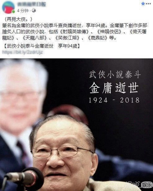 其实之前传过类似的假新闻,但很遗憾,这次是真的,金庸老先生的儿子已经回应了。(暴风哭泣)