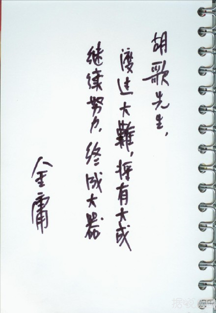 你们知道吗?金庸曾经给胡歌写过一句话:渡过大难,将有大成,继续努力, 终成大器。