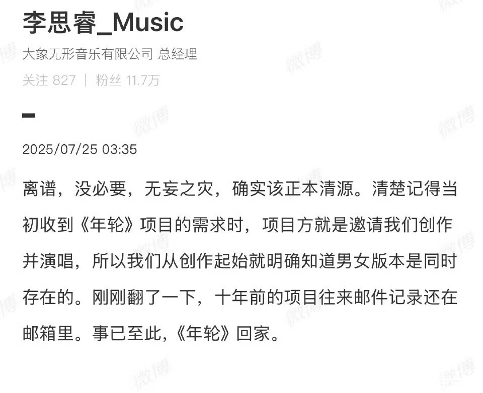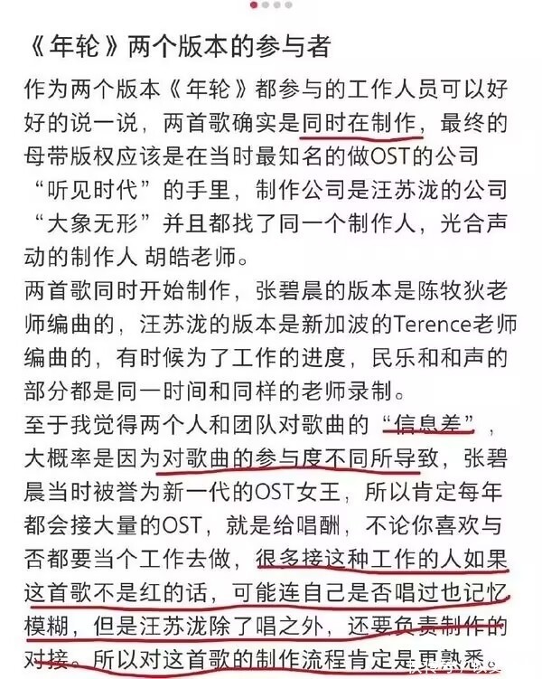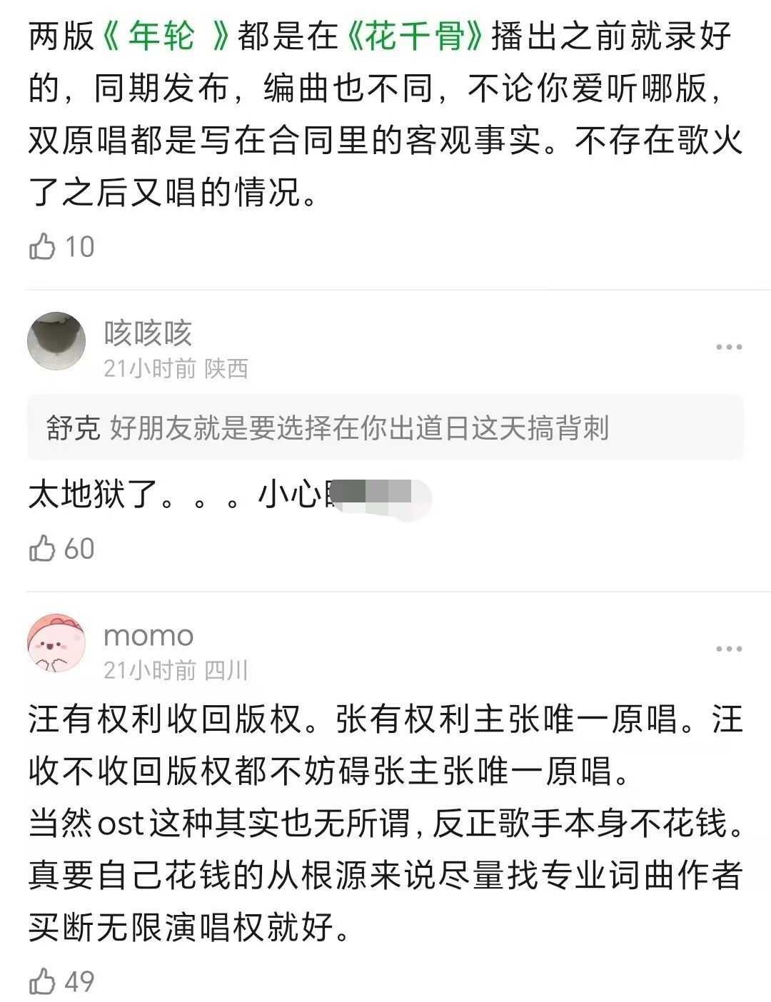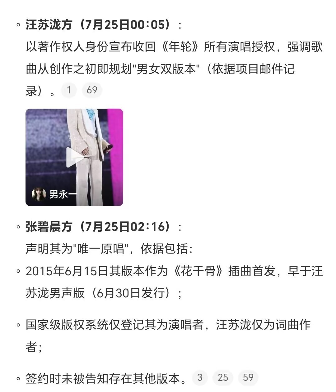 其中有一条格外引人注目:“《年轮》的原唱只有张碧晨。”