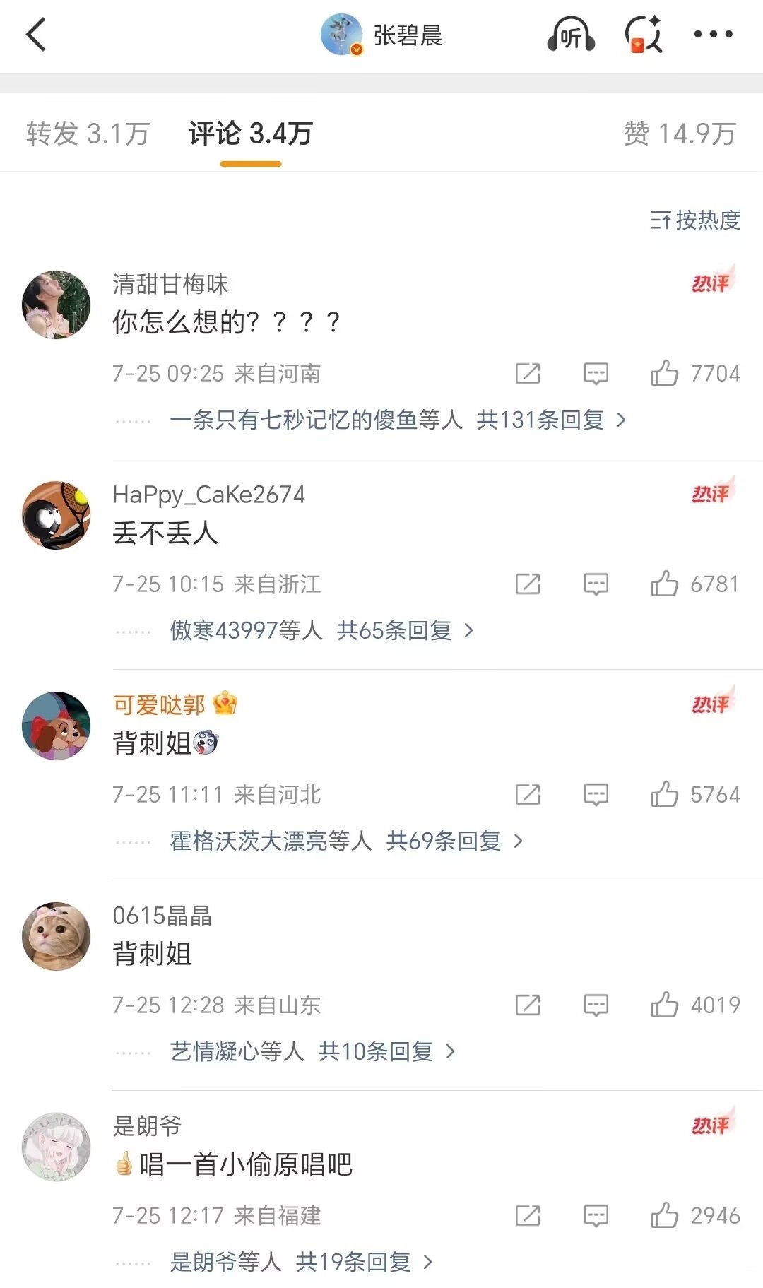 紧接着,网络评论区开始热闹起来,有人指责汪苏泷收回版权是“背信弃义”,也有人在张碧晨微博下留言,称她行为不妥。